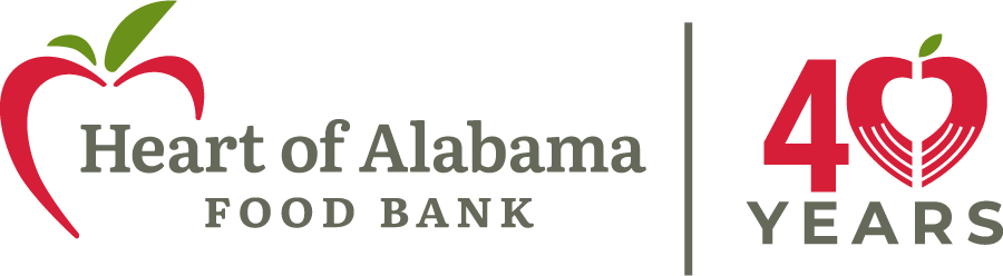 The Heart of Alabama Food Bank (HAFB) sources and distributes food across 35 Alabama counties—serving 12 directly (counties in green) and the remaining 23 through four affiliated food banks (counties in yellow): West Alabama (Tuscaloosa), East Alabama (Auburn), Wiregrass (Dothan), and Selma Area (Selma).